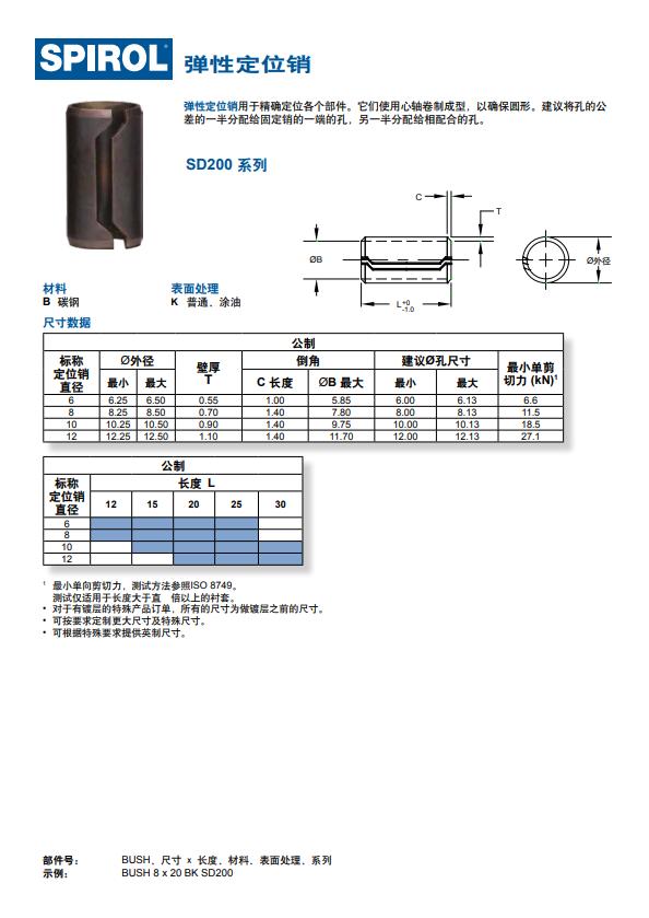 史派洛 SPIROL SD200系列弹性定位销 公制