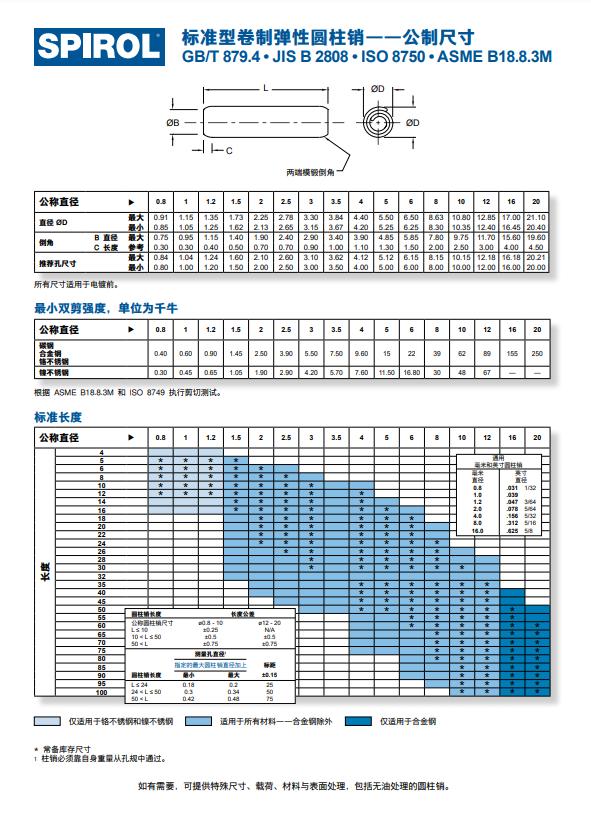ASME B18.8.3M 史派洛 SPIROL 卷制弹性圆柱销/卷制销/卷制弹性销/卷销/铰链销/卷制弹簧销