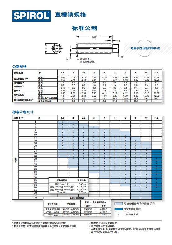 ASME B18.8.4M 史派洛 SPIROL 开槽弹性圆柱销/直槽弹性圆柱销/直槽销/开槽销/开槽弹性销/直槽弹性销/开槽圆柱销/直槽圆柱销/槽销
