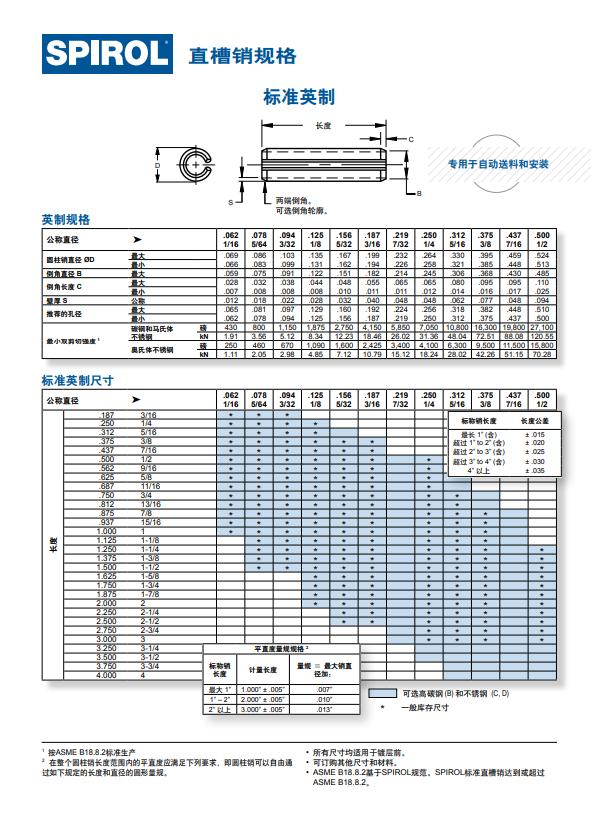 ASME B18.8.2 史派洛 SPIROL 开槽弹性圆柱销/直槽弹性圆柱销/直槽销/开槽销/开槽弹性销/直槽弹性销/开槽圆柱销/直槽圆柱销/槽销