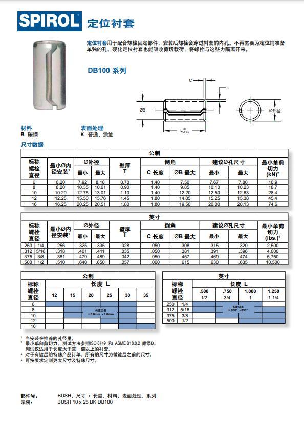 史派洛 SPIROL DB100系列定位衬套 英制